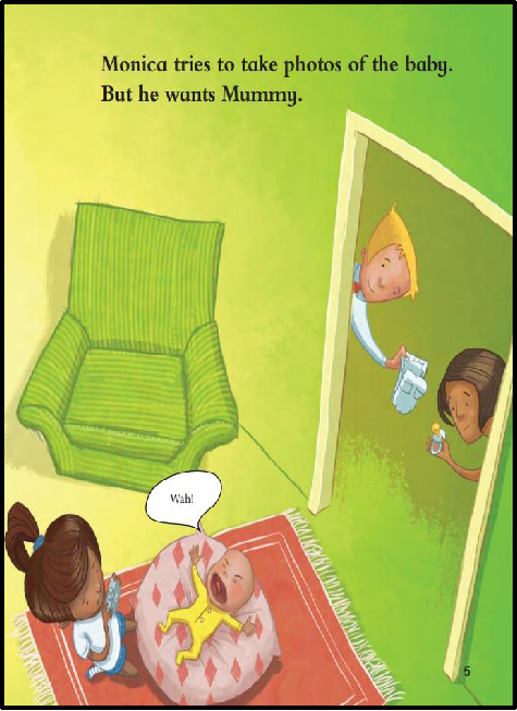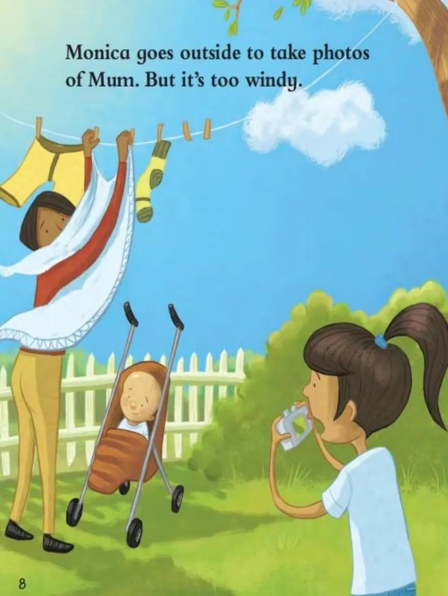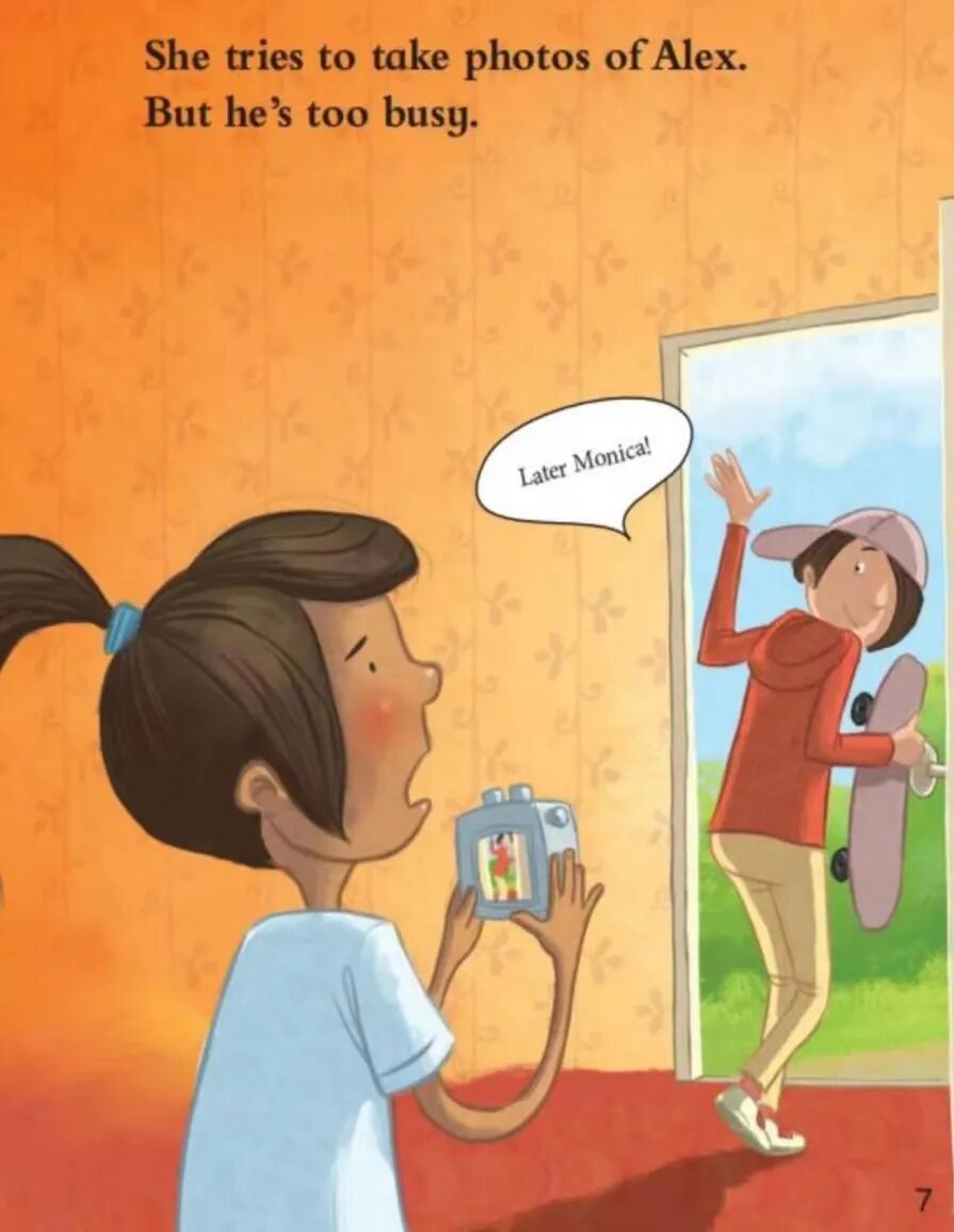《A New Hobby》(莫妮卡的新爱好)是《丽声北极星自然拼读绘本》第五级中的一本英文绘本。故事内容小女孩莫妮卡有了一个新的爱好——摄影。她的父母送给她一台相机和一本相册,她兴奋地尝试给家人和宠物拍照,但过程中遇到了各种小挫折:宝宝要妈妈、小狗让人头晕、天气不佳等。尽管如此,莫妮卡没有放弃。在生日当天,家人精心准备的惊喜聚会为她提供了完美的拍摄场景,她成功拍下了一张有趣的全家福,收获了满满的快乐和成就感。